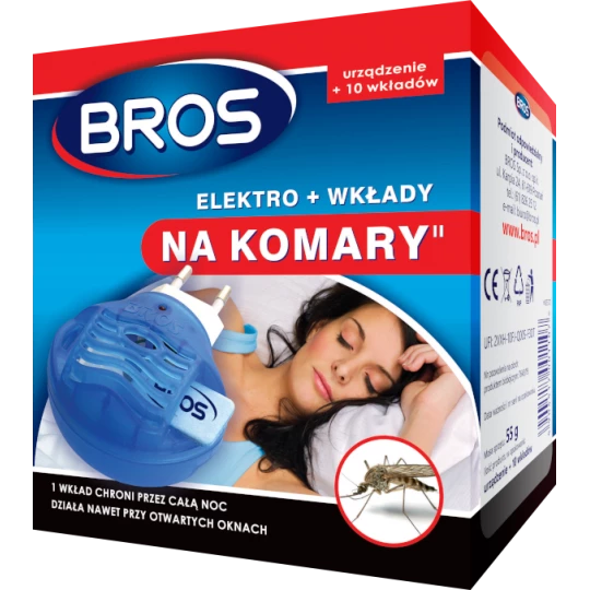 - Profesjonalne rozwiązanie od marki BROS, zapewniające spokój i komfort w domu. Urządzenie z wkładami nasączonymi substancją czynną skutecznie zwalcza komary i zabezpiecza pomieszczenia nawet przy otwartych oknach i włączonym świetle.