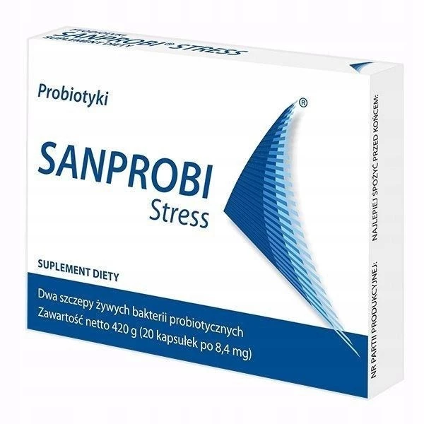 - Sanprobi Stress to nowoczesny probiotyk dobrany dla osób poszukujących równowagi. Zawiera unikalną kompozycję dwóch szczepów bakterii probiotycznych.