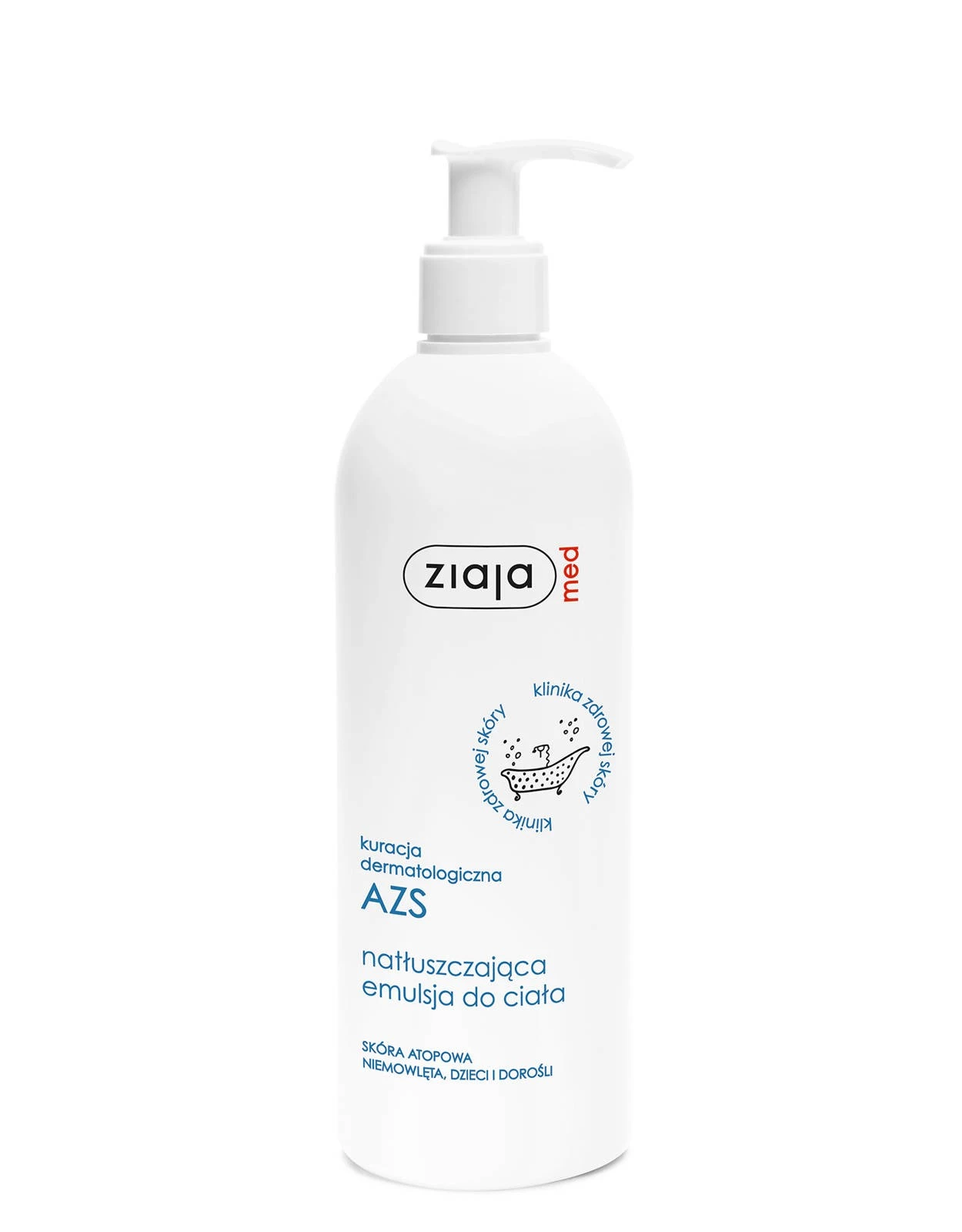 - Natłuszczająca emulsja do ciała o wysokiej aktywności łagodzącej, ochronnej i nawilżającej. Zawiera tylko niezbędne składniki receptury. Wykazuje skuteczność dermatologiczną w pielęgnacji skóry suchej występującej w przebiegu AZS.