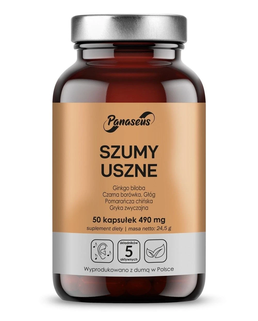 Suplement diety Panaseus Szumy uszne to wysokiej jakości produkt, który zawiera opatentowaną formułę 5 składników aktywnych: gryki zwyczajnej, czarnej borówki, głogu, pomarańczy chińskiej i Ginkgo biloba. Preparat ten posiada naturalny, prosty i czysty skład. Jest wolny od sztucznych dodatków i ulepszaczy.