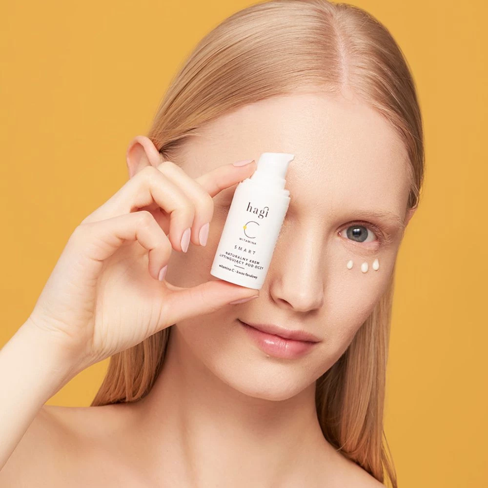 ✅ Krem pod oczy i na łuk brwiowy z witaminą C Hagi SMART to zaawansowany kosmetyk stworzony specjalnie do pielęgnacji najbardziej delikatnej i najcieńszej skóry na twarzy. Formuła kremu spłyca linie zmarszczek, „odświeża” spojrzenie oraz pomaga zminimalizować cienie pod oczami i opadanie górnej powieki. Kwas ferulowy wzmacnia i stabilizuje działanie witaminy C, jednocześnie niwelując stres oksydacyjny. Sezamina wypełnia zmarszczki i linie mimiczne, a zawarte flawonoidy wspierają produkcję kolagenu.