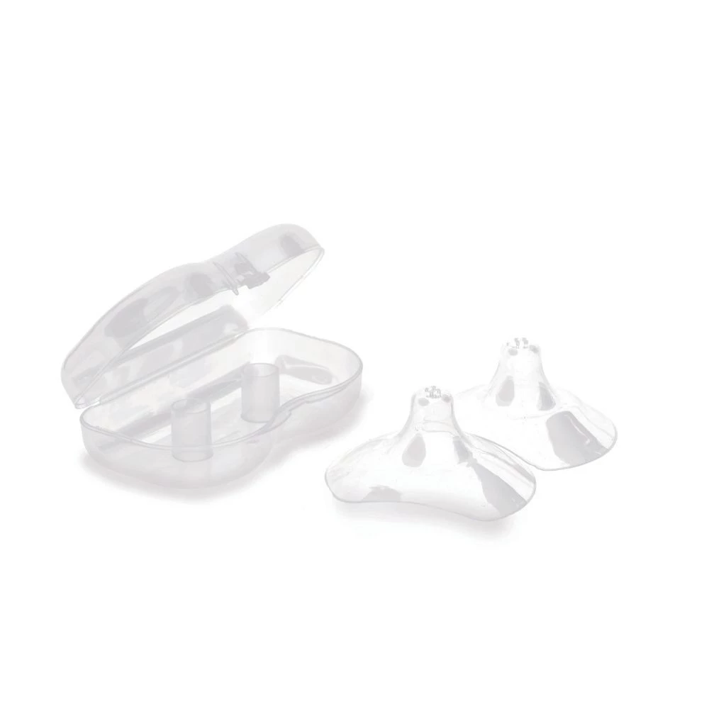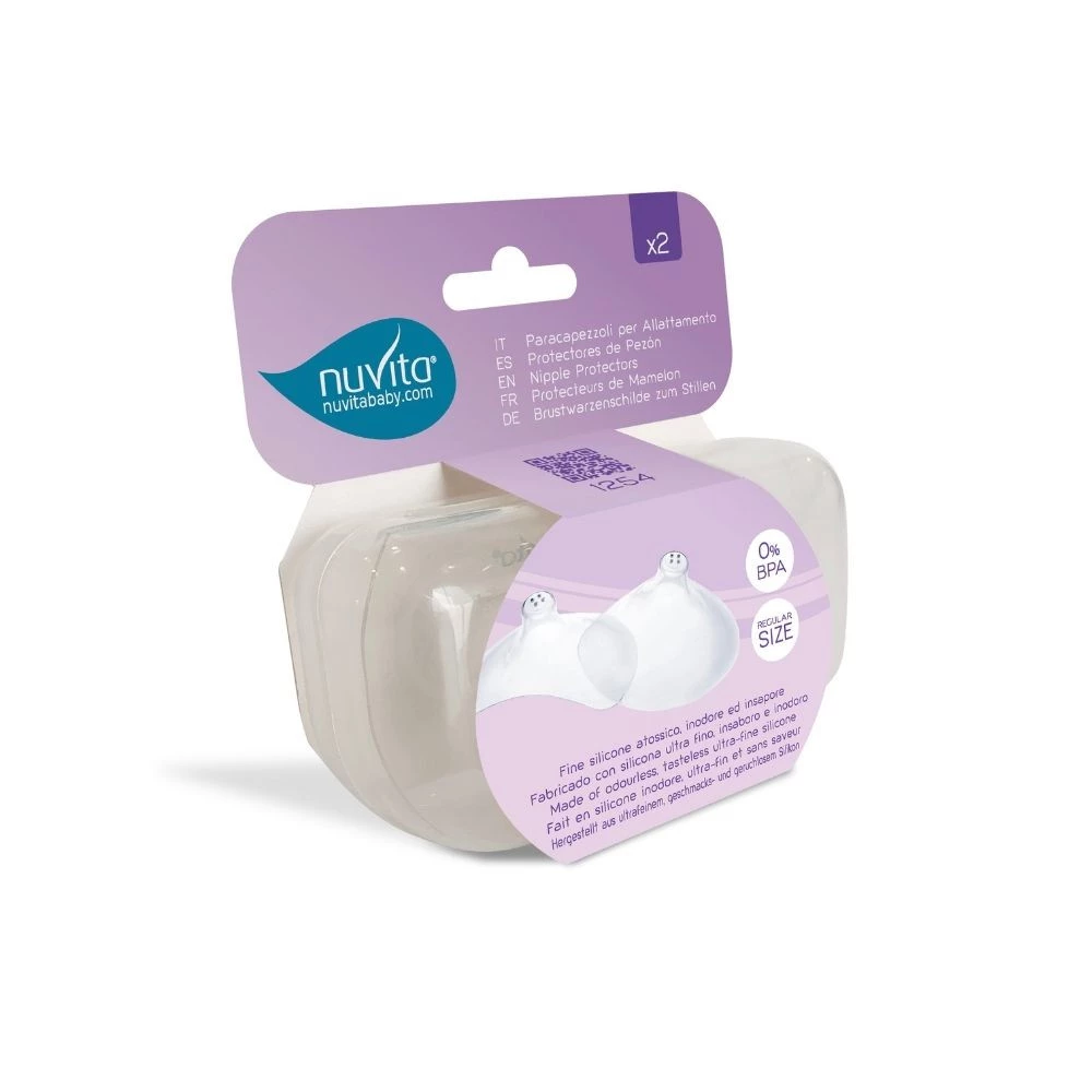 Osłonka na brodawki Nuvita zostały zaprojektowane, aby pomóc w karmieniu piersią w przypadku dyskomfortu brodawek sutkowych lub problemów z przystawieniem dziecka. Chronią one wrażliwe, podrażnione lub obolałe brodawki sutkowe i umożliwiają karmienie piersią nawet w przypadku małych, spłaszczonych lub wciągniętych brodawek. Wykonane z ultracienkiego, nietoksycznego, bezzapachowego i bezsmakowego silikonu, pozwalają dziecku poczuć Twój zapach; ponadto ich szczególny kształt umożliwia przyjemny kontakt skóra do skóry. Nie zawierają BPA i są hipoalergiczne, sprzedawane są w opakowaniach po 2 sztuki. W opakowaniu znajduje się również praktyczne etui do przechowywania i utrzymywania osłonek na sutki w czystości, gdziekolwiek jesteś.