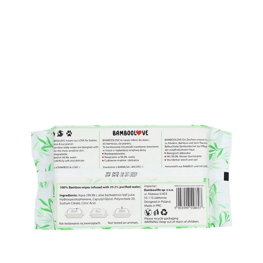 Bamboolove, Bambusowe chusteczki nawilżane dla dzieci, 60 szt.