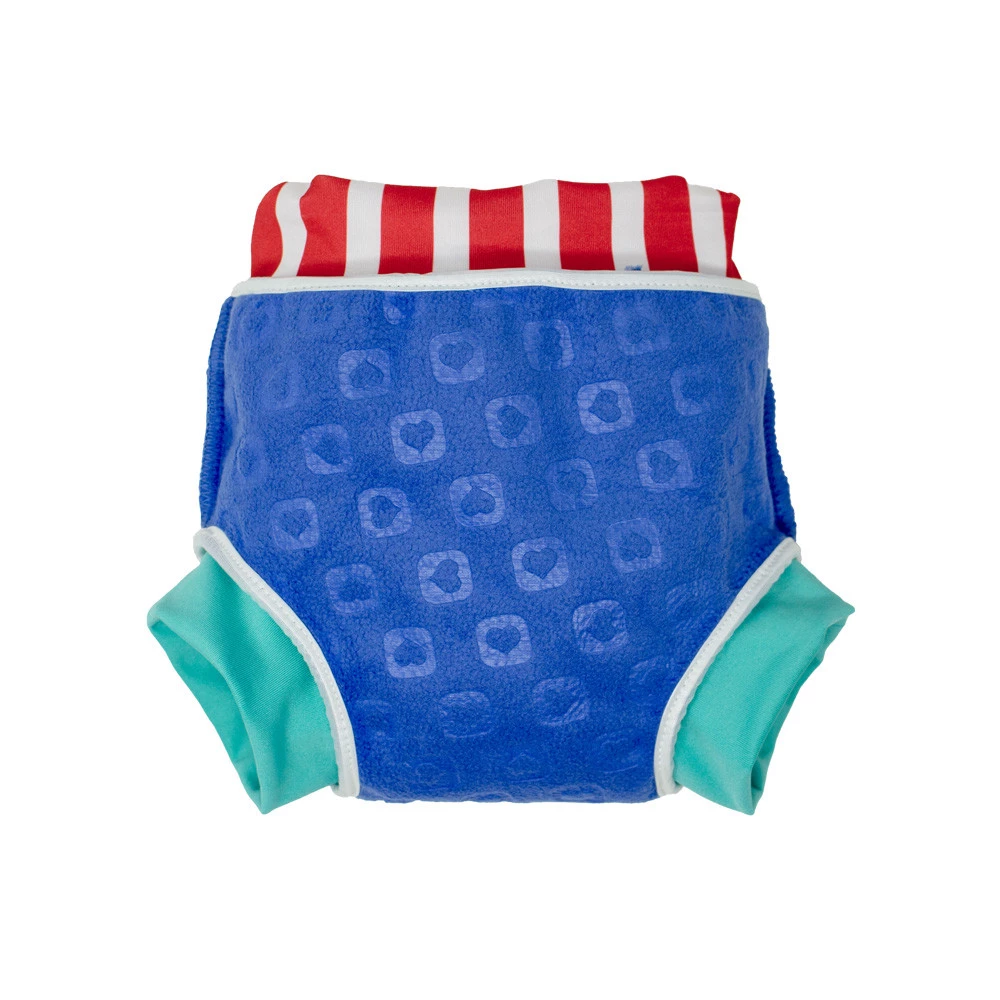 Pielucha do pływania jest wykonana ze specjalnego laminatu, który jest bardziej miękki i elastyczny niż stroje kąpielowe z neoprenu. Zewnętrzna warstwa jest odporna na plamy i zaprojektowana tak, aby utrzymać pieluszkę w idealnym stanie, podczas gdy szybko odprowadzający wilgoć polar wewnątrz zapewnia dziecku przytulność.