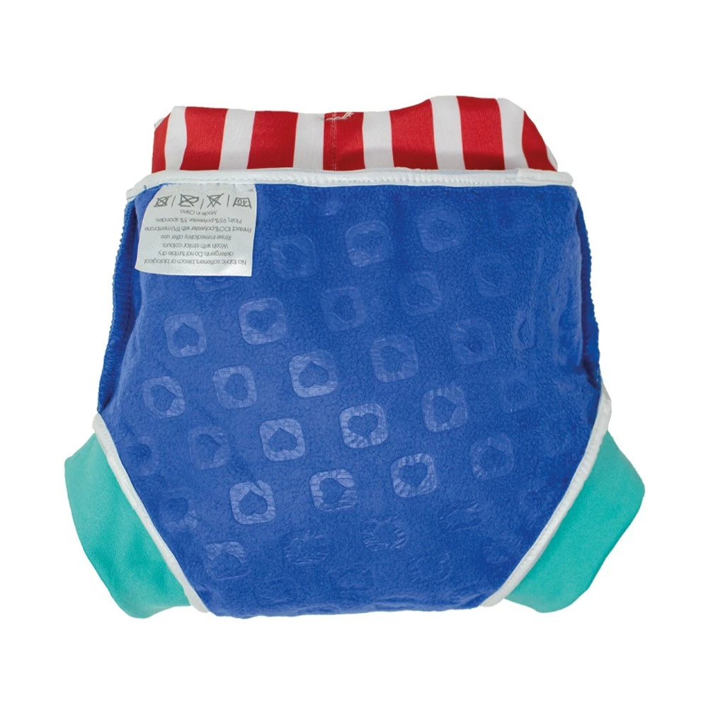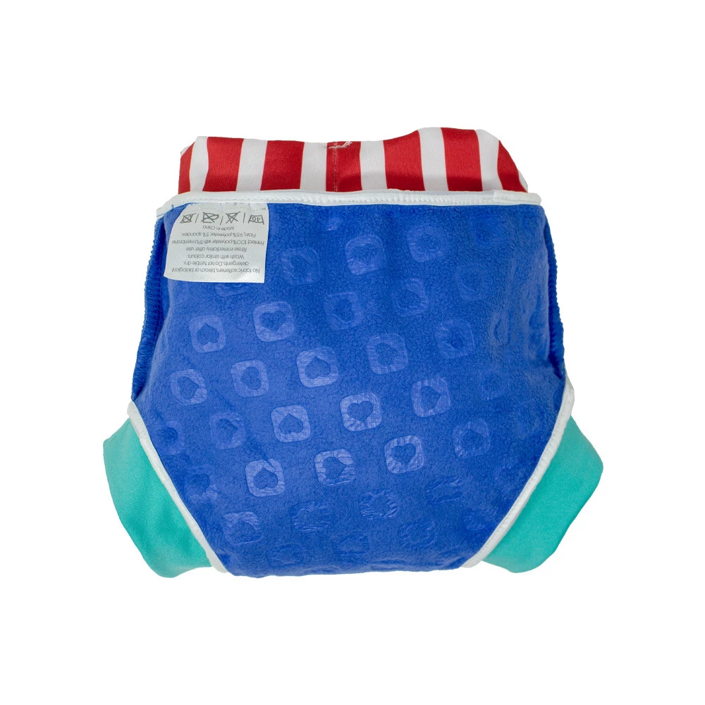 Pieluszka do pływania wykonana jest ze specjalnego, miękkiego i elastycznego laminatu z odporną na plamy warstwą zewnętrzną, dzięki której pieluszka wygląda świetnie, i miękkim polarem wewnątrz, aby maluchy czuły się komfortowo w wodzie.