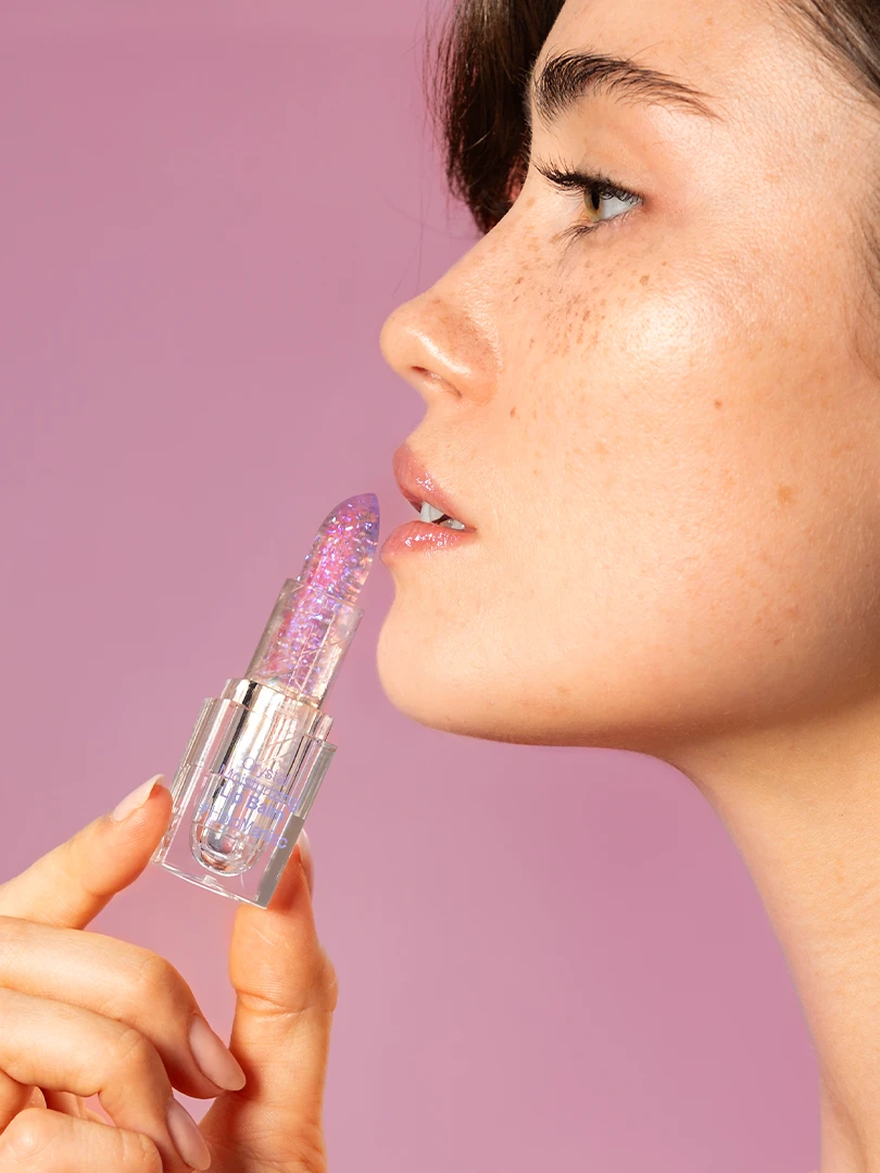 Rozprowadź balsam precyzyjnie wzdłuż linii ust, aby nadać im spektakularnego holo blasku. Stosuj w ciągu dnia tak często, jak potrzebujesz – solo lub na ulubioną pomadkę.