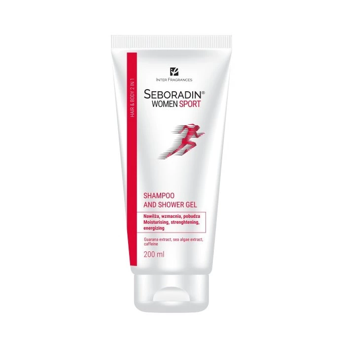 - Szampon i żel 2w1 Seboradin Women Sport z kofeiną, guaraną i algami morskimi. Delikatnie oczyszcza skórę i włosy, intensywnie odświeża.