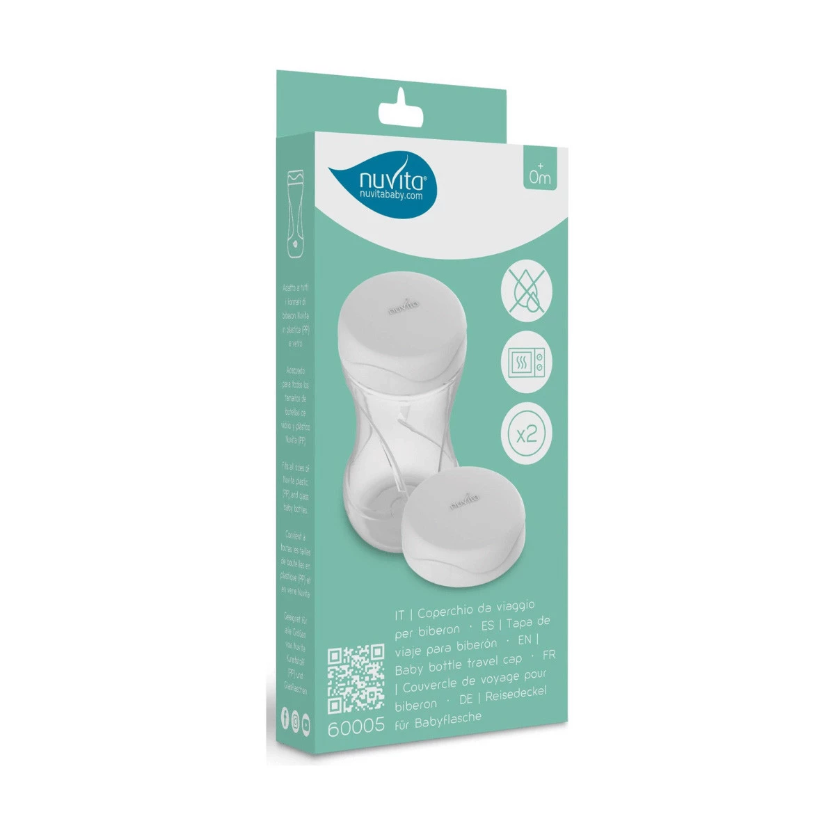 Nakrętki podróżne do butelek Nuvita 60005 szybko i łatwo przekształcają butelki dla niemowląt Nuvita w praktyczne pojemniki do przechowywania.