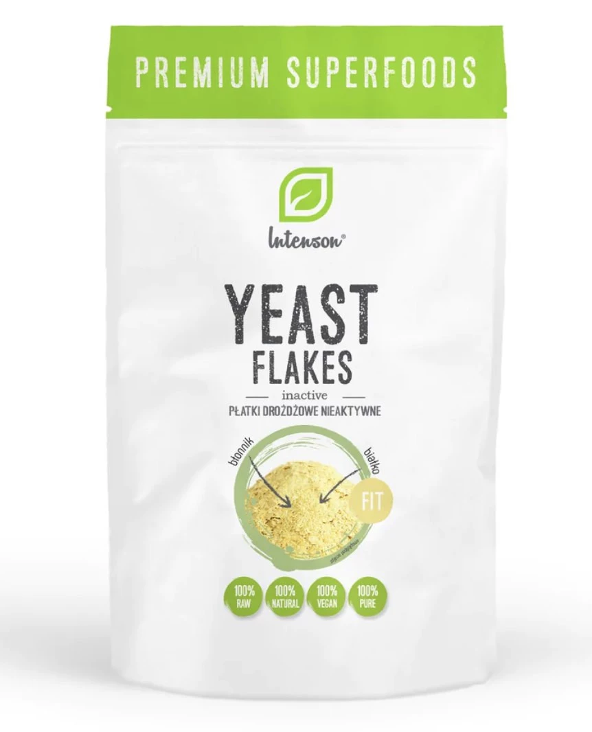 Intenson Płatki drożdżowe nieaktywne 100 g to naturalny skarb dla miłośników zdrowego stylu życia. Są one cennym źródłem błonnika oraz niektórych witamin i minerałów, które wzbogacą twoją codzienną dietę – również tę wegańską i wegetariańską.