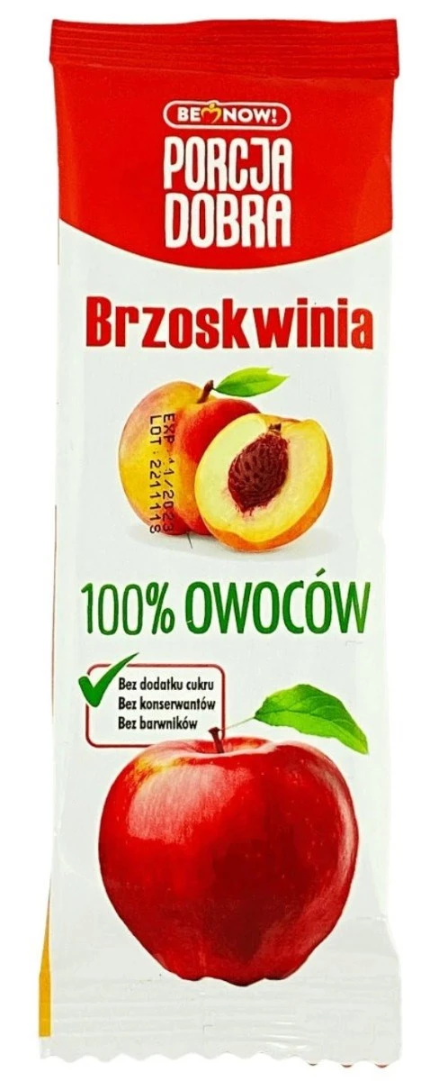 Dzięki praktycznej formie przekąskę można wrzucić do kieszeni, torebki lub plecaka i zabrać ze sobą do pracy, do szkoły, na trening oraz w podróż. Jej ogromnym atutem jest także niska kaloryczność i przyjemny jabłkowo-brzoskwiniowy smak, który przypadnie do gustu małym i dorosłym smakoszom.