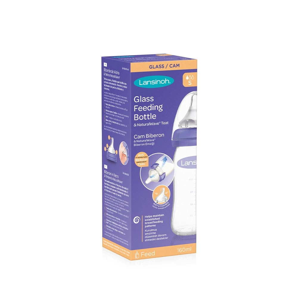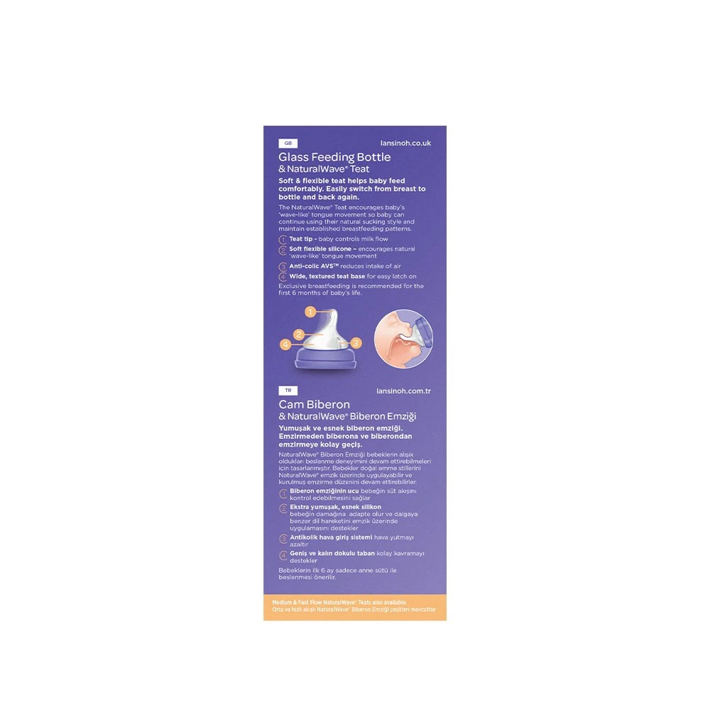 Lansinoh, mOmma, Szklana butelka ze smoczkiem o wolnym przepływie Natural Wave, 160 ml