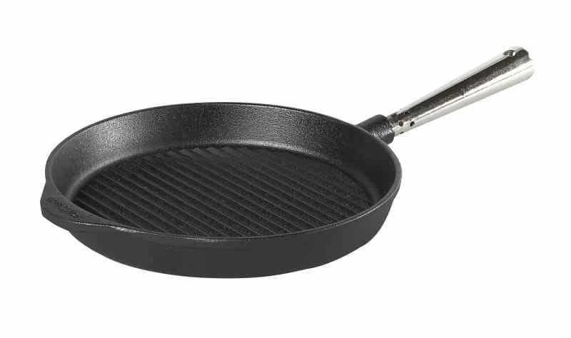 Patelnia do grillowania, okrągła ze stalowym uchwytem.