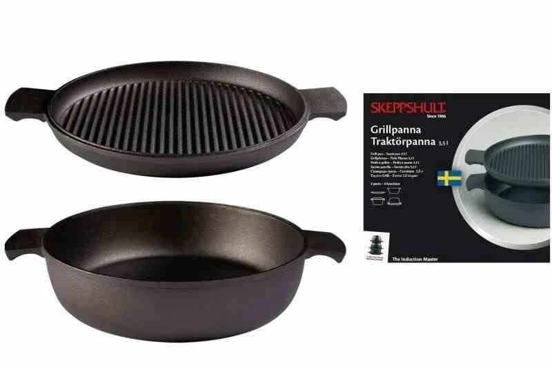 Kiedy po raz pierwszy mamy do czynienia z produktem marki Skeppshult, od razu zwracamy uwagę na jego wagę. Z pewnością ogranicza ona możliwości manualne, ale ma również swoje zalety. Każde naczynie marki Skeppshult ma powierzchnię o grubości 5 mm. Zapewnia to równoległy rozkład ciepła podczas nagrzewania oraz zapobiega ochładzaniu się patelni podczas dodawania żywności. Innym aspektem jest odporność żeliwnych produktów na wysokie temperatury: dno patelni jest wklęsłe zapobiega to odkształceniu tak charakterystycznemu dla patelni o cienkim dnie np. teflonowych. Wszystkie naczynia marki Skeppshult nadają się do każdego rodzaju kuchenek, w tym indukcyjnych.