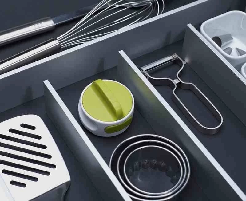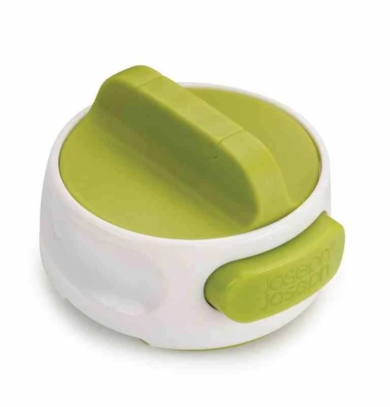 Kompaktowy otwieracz z białego i zielonego tworzywa sztucznego. Można nim szybko i łatwo otworzyć każdą puszkę. Posiada duże pokrętło – wystarczy go przekręcać, aby spodni nożyk otworzył puszkę. Naciśnięcie przedniego przycisku powoduje zwolnienie pokrywy. Bezpieczny – pokrywki otworzonych puszek nie mają postrzępionych krawędzi. Łatwy do przechowywania w szufladach.