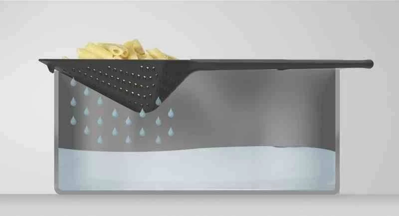 Łyżka cedzakowa Scoop to idealne rozwiązanie dla wszystkich, którzy kochają gotowanie. Łyżka do odcedzania gotowanych warzyw, makaronów, potraw smażonych w głębokim tłuszczu jak np.frytki. Znakomicie sprawdzi się również jako łyżka do serwowania. Można ją oprzeć o brzeg garnka – ma specjalne wypustki. Nowością są silikonowe wykończenia na rączkach. Nadaje się powierzchni non-stick. Łyżkę można używać w temperaturze do 200 stopni C.