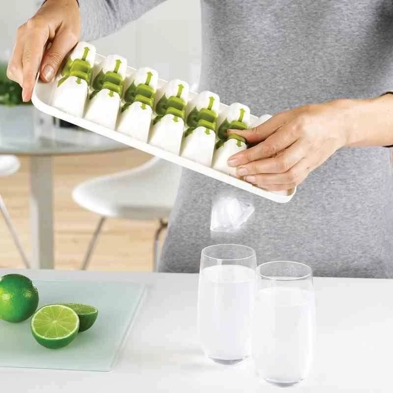 Foremka do lodu, wyglądem przypomina tradycyjną, natomiast wyposażona jest w unikatowy mechanizm uwalniający kostki lodu wg potrzeb. Po odwróceniu formy nie wypadnie więcej kostek lodu, tylko te które chcesz, naciskając silikonowy uchwyt.