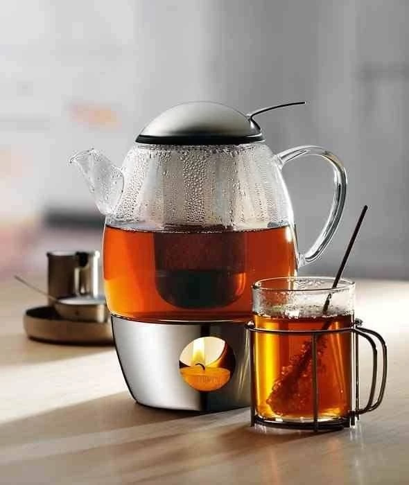 - w zestawie: dzbanek, sito i podgrzewacz,