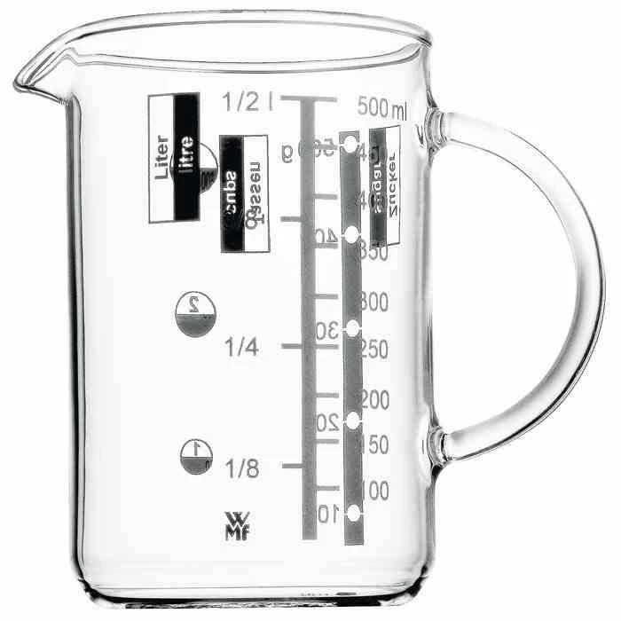 - szklany dzbanek z miarką o pojemności 0,5 l,