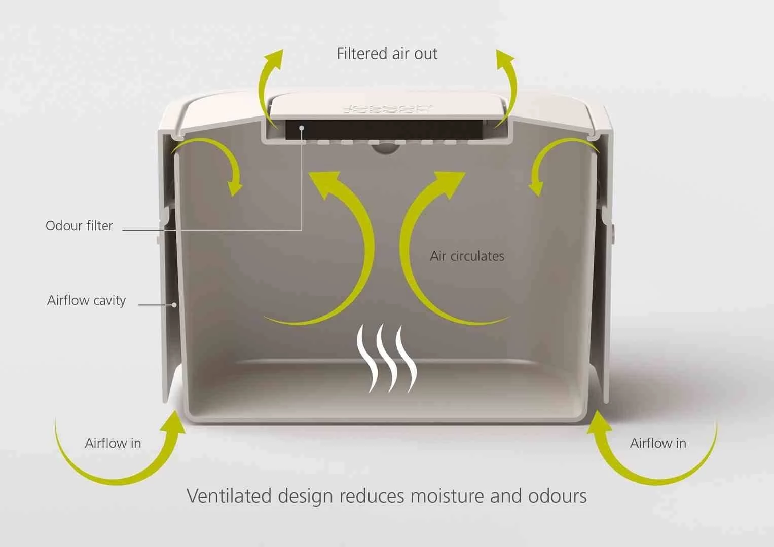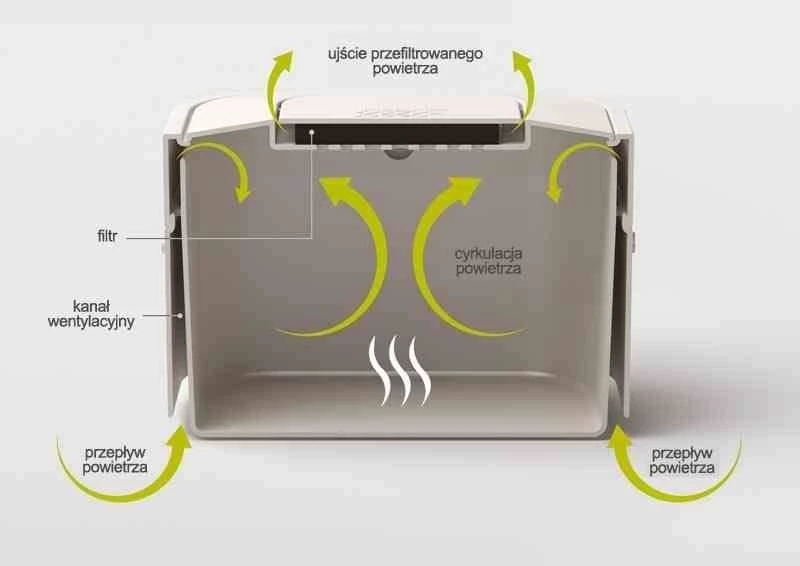 - zapewnia cyrkulację powietrza wewnątrz, ale zapobiega wydostawaniu się zapachów,