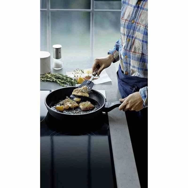 - patelnia z odlewu aluminiowego z powłoką zapobiegającą przywieraniu,