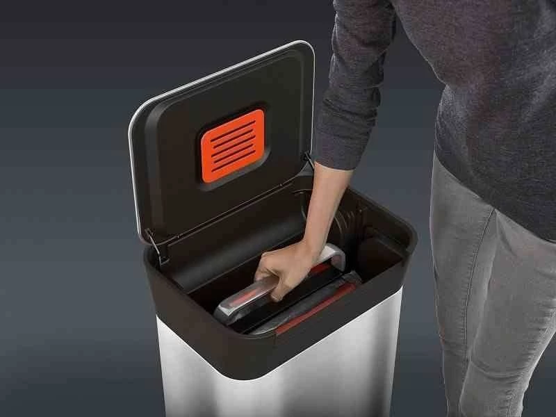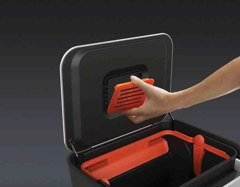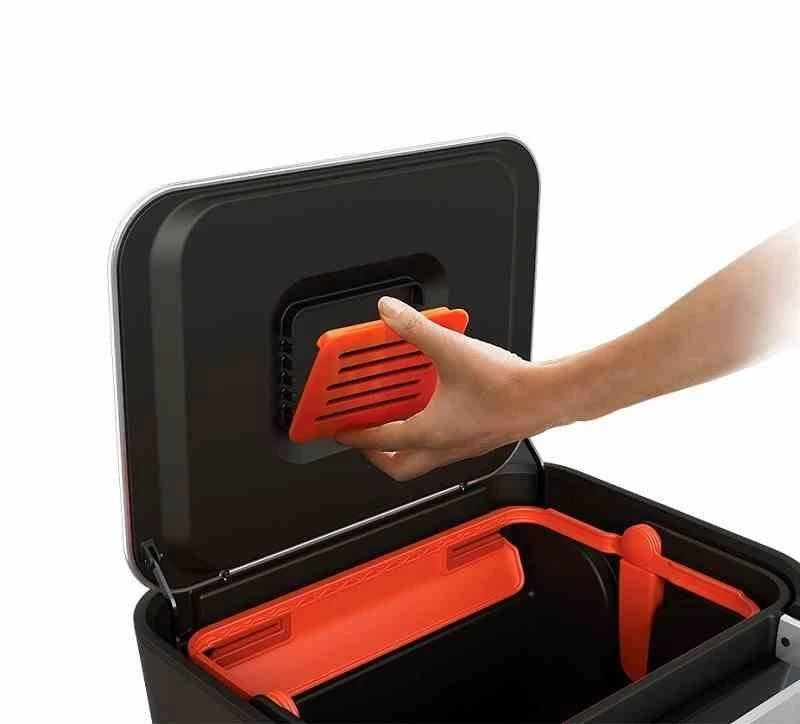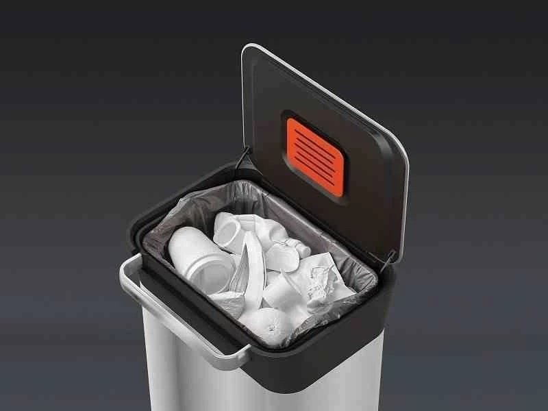 - kosz wyposażony w filtr węglowy neutralizujący zapachy, łatwy do wymiany, producent zaleca jego wymianę co 3 miesiące,