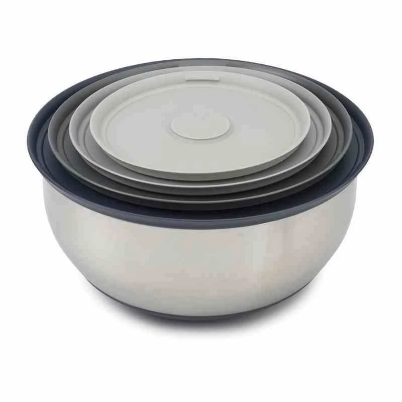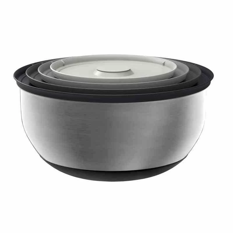 - zestaw misek kuchennych ze stali nierdzewnej wraz z silikonowymi pokrywkami,