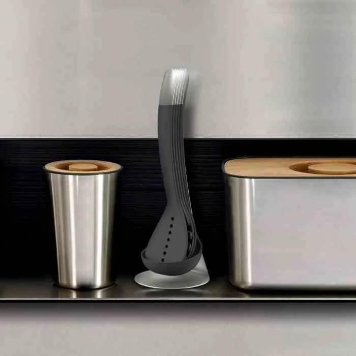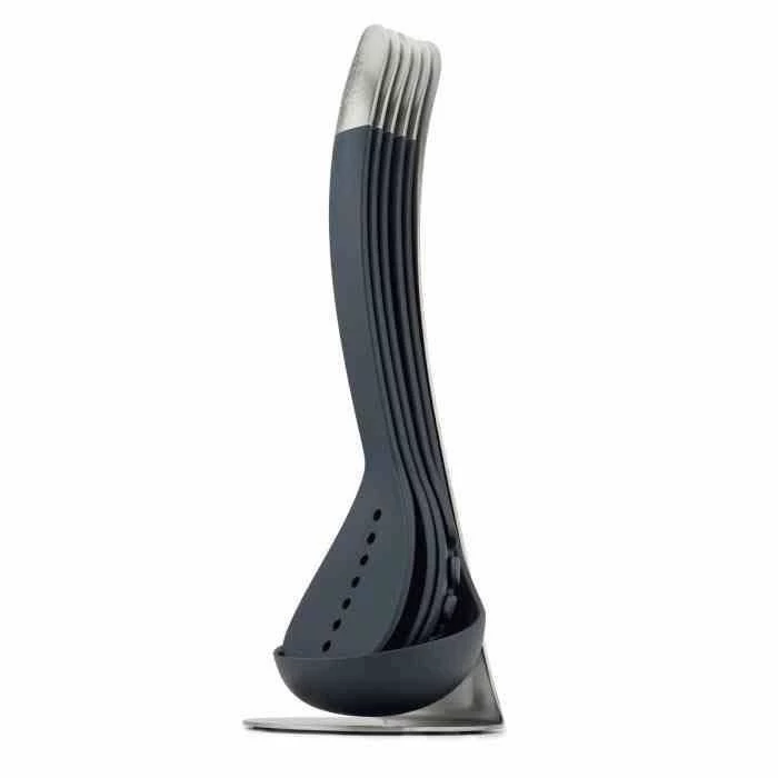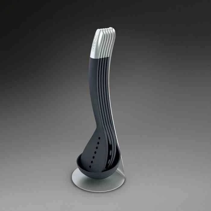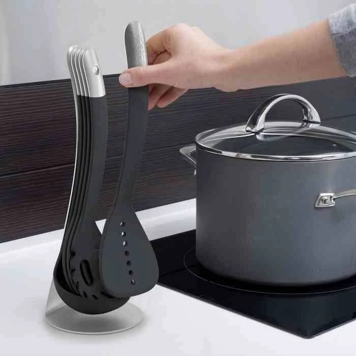 - zestaw narzędzi kuchennych składa się ze stojaka, chochelki, łyżki do mieszania, łyżki cedzakowej, łyżki do spaghetti i łopatki do przewracania,