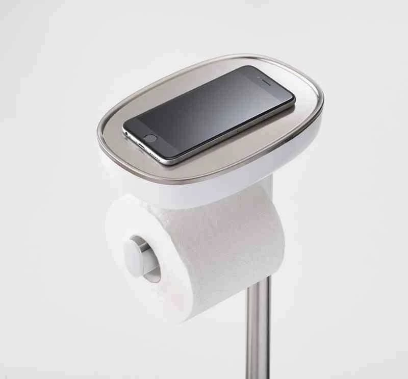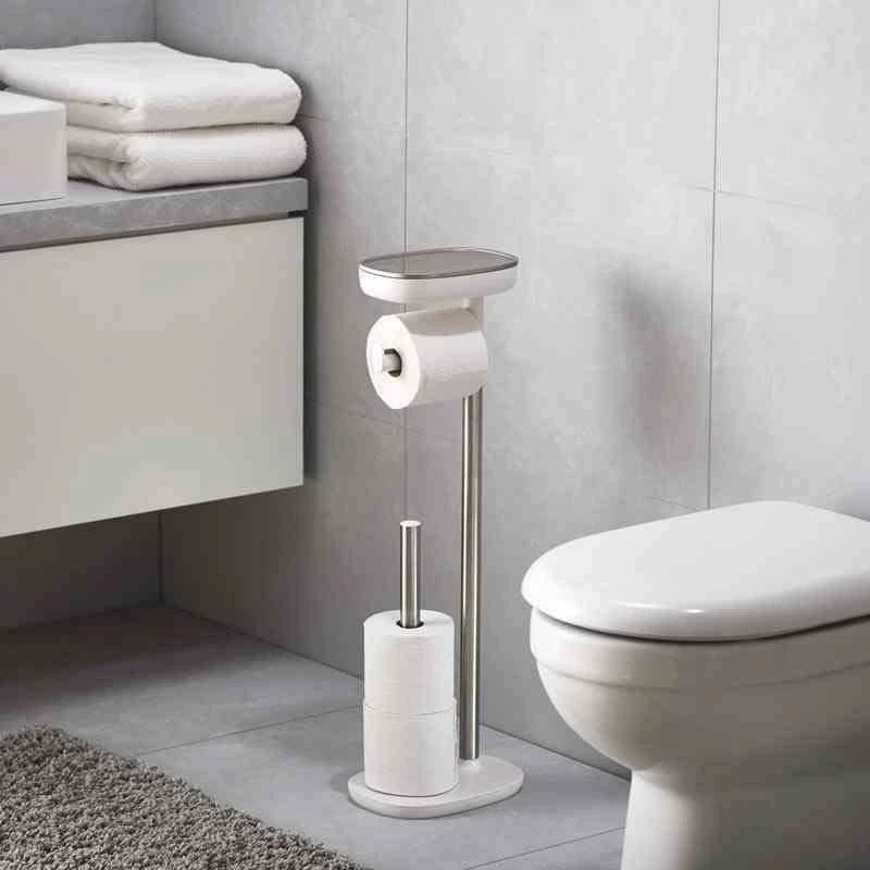 - wolnostojący uchwyt na papier toaletowy – mieści w sumie 4 rolki (w tym 3 na zapas),