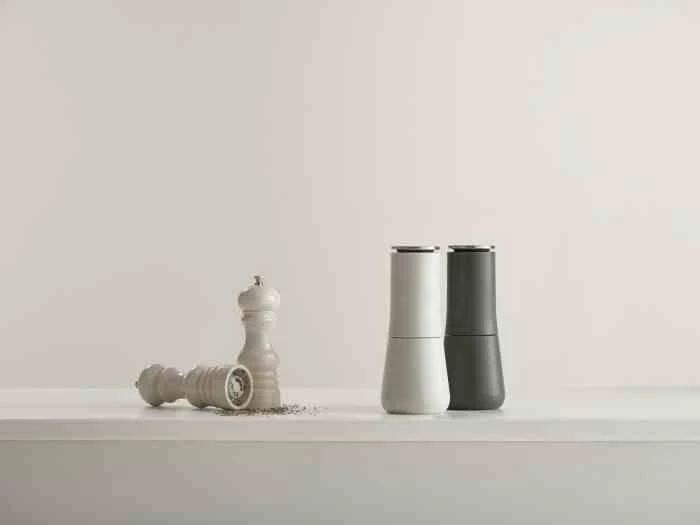 - zestaw nowoczesnych młynków do soli i pieprzu,