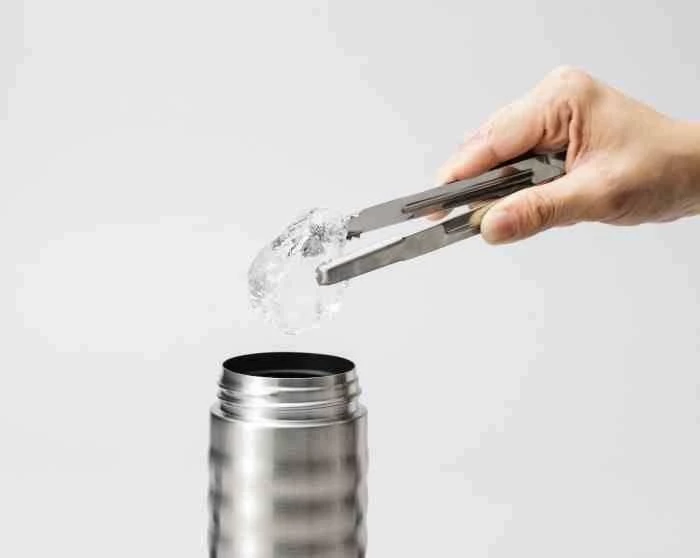 - pokrywka zakręcana, wewnątrz wkładka z otworami do picia, zatrzymuje również kostki lodu,