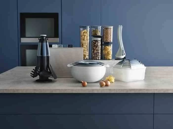 - w zestawie miski o pojemnościach: 4,5 l i 0,5 l, sito (1,65 l), durszlak (3 l) oraz miarki: 250 ml, 125 ml, 85 ml, 60 ml, 15 i 5 ml,