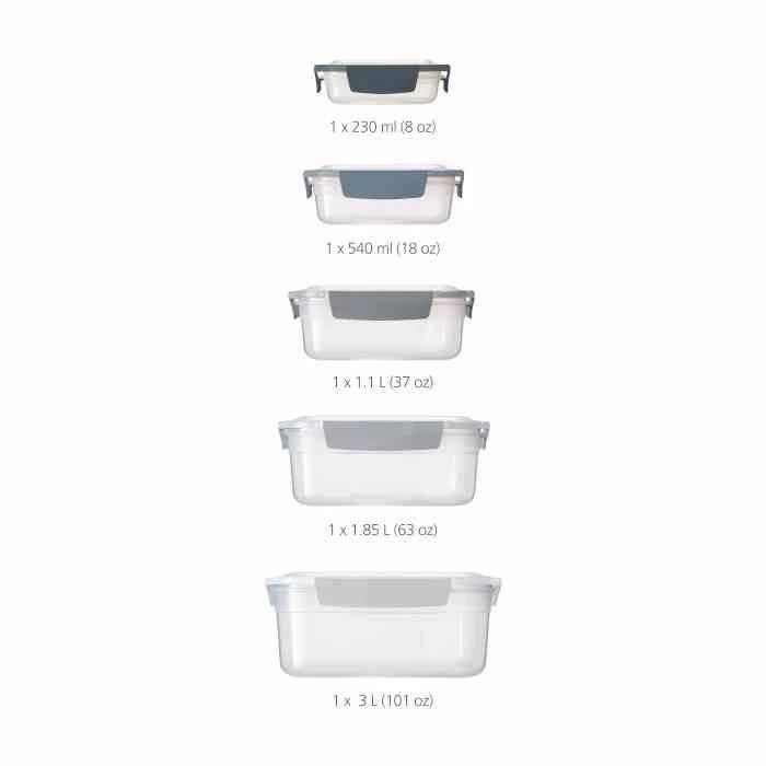 - w komplecie pojemniki o pojemnościach: 230 ml, 540 ml, 1.1 l, 1.85 l, 3 l,