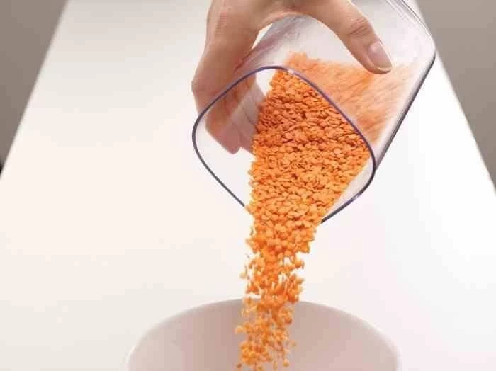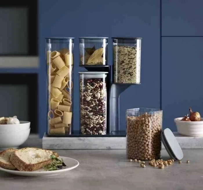 - zestaw 5 pojemników z uszczelkami do przechowywania produktów sypkich,