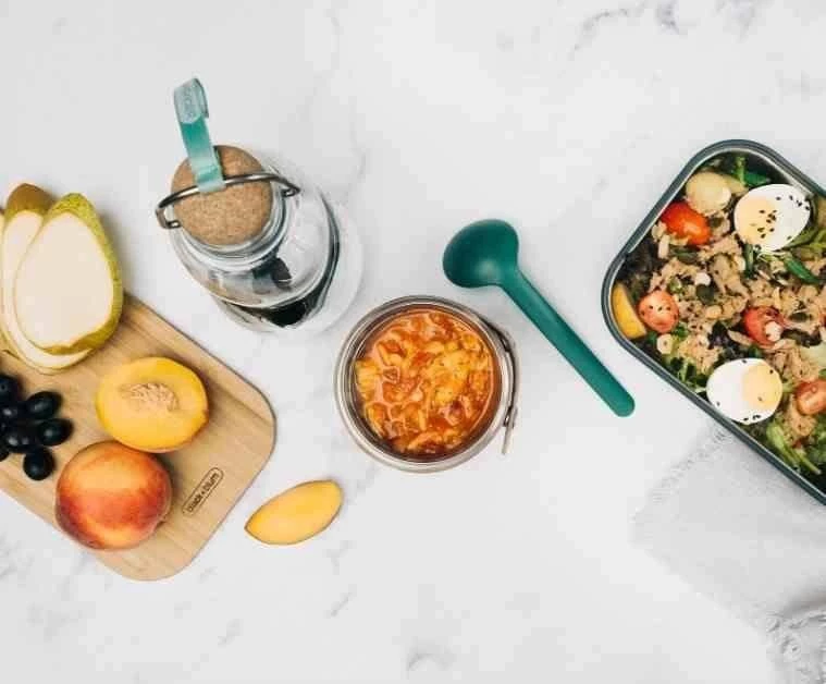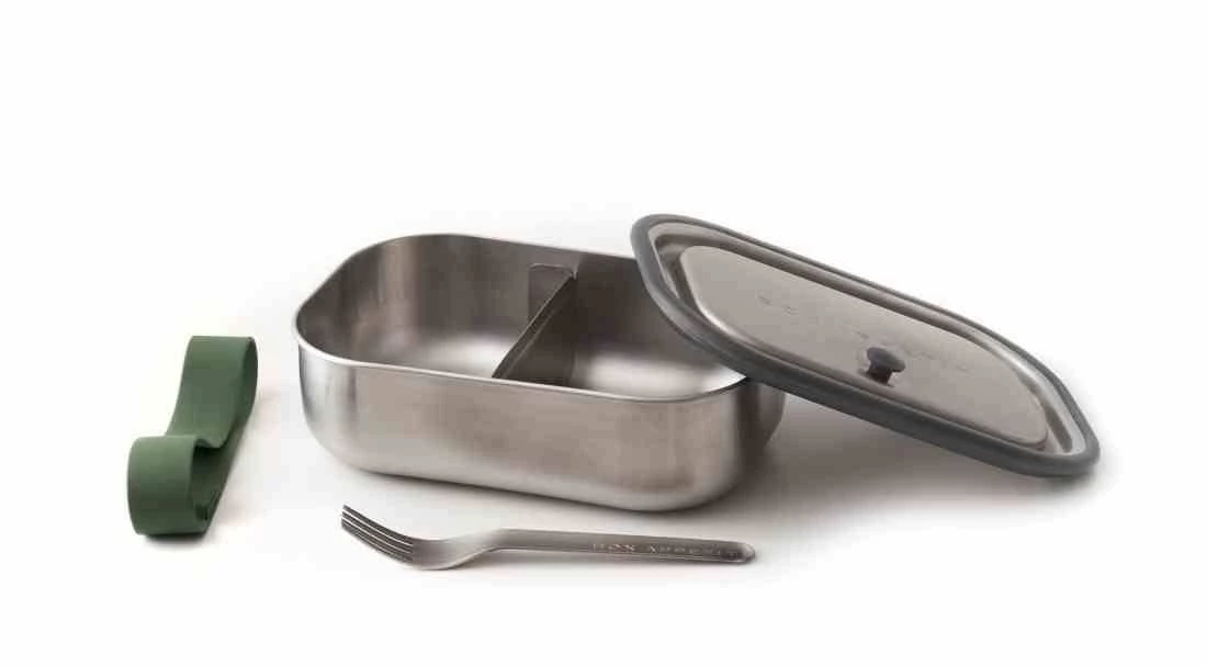 - lunch box wykonany ze stali nierdzewnej i wyposażony w silikonowy pasek przytrzymujący,