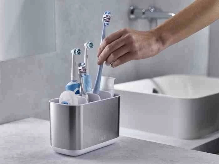 - szeroki pojemnik na szczoteczki do zębów (zwykłe i elektryczne) i pasty,