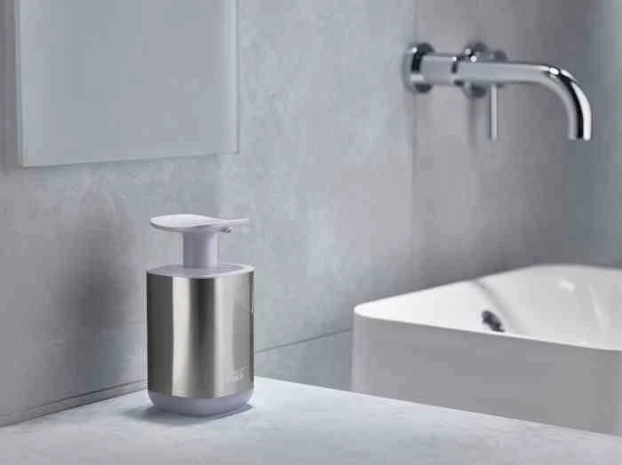 - posiada wykończoną stalą nierdzewną szeroką pompkę – można naciskać ją nadgarstkiem,