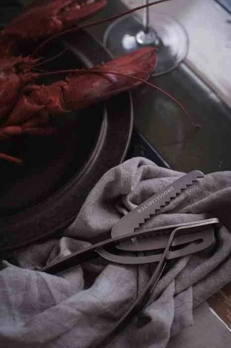 - konstrukcja podwójnej dźwigni – użycie wymaga niewielkiego wysiłku, a rozgniatanie pancerza nie uszkadza mięsa,