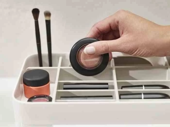- posiada magnetycznie zamykaną szufladkę np. na waciki - w środku przegródki,