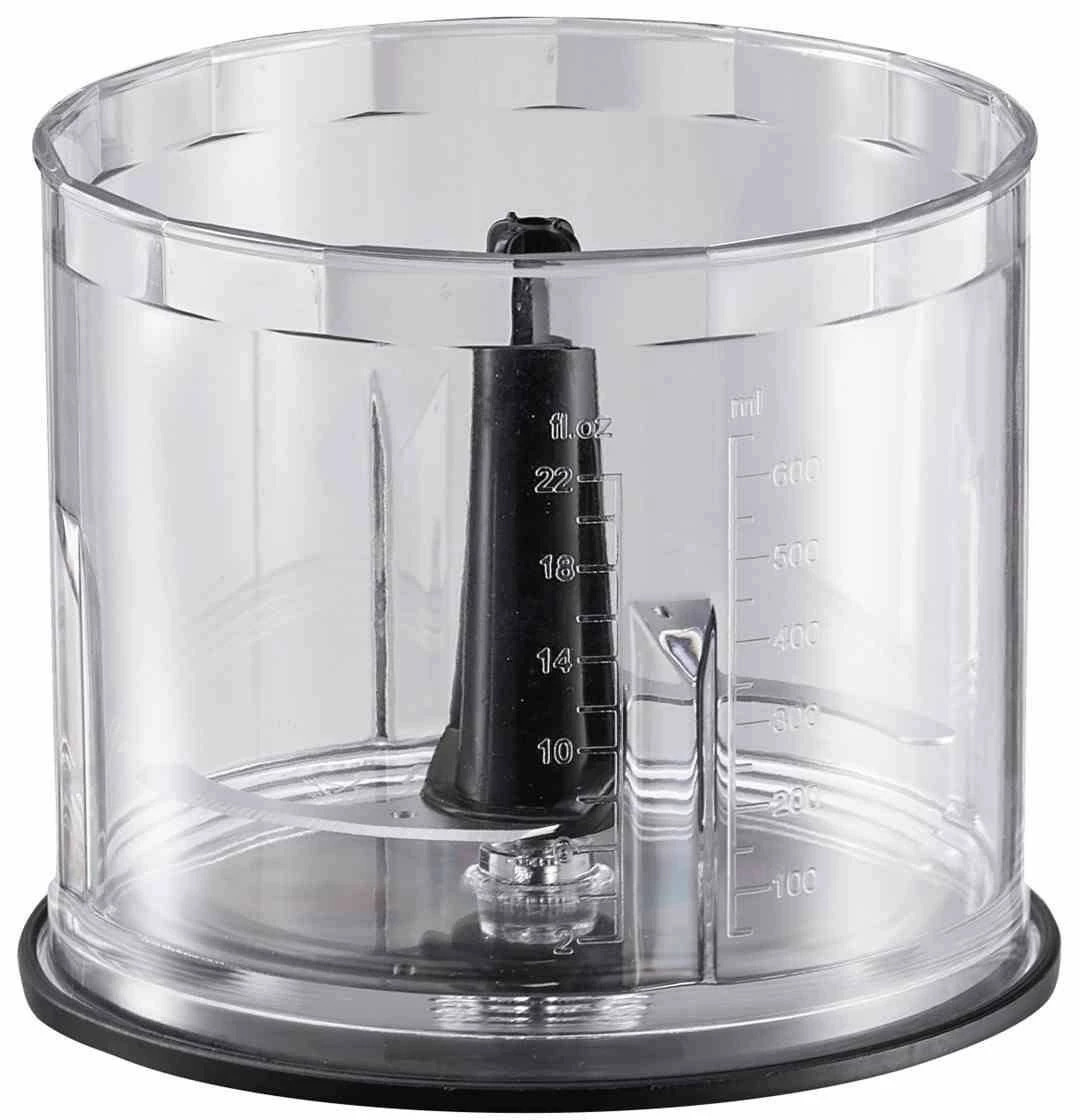 - w komplecie: blender, pojemnik z nożykiem do siekania, nasadka z trzepaczką, nasadka z ubijakiem, pojemnik na koktajl (700 ml) z pokrywką,