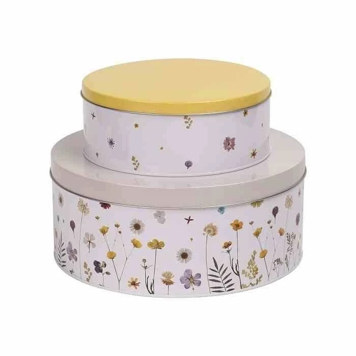 - zestaw zawiera średnią i dużą puszkę z pięknym kwiatowym nadrukiem, które można umieścić jedna na drugiej,