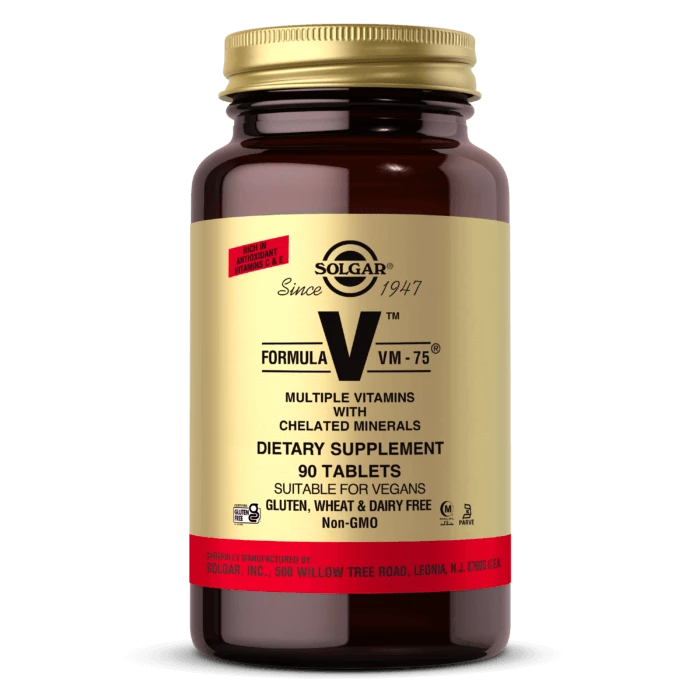 Produkt Solgar Formula VM-75 kompleks Witamin 90 tabl. Solgar to suplement diety. Nie może być stosowany jako substytut zróżnicowanej diety. Pamiętaj o zrównoważonym sposobie żywienia i zdrowym trybie życia.- Przechowuj w chłodnym miejscu, z dala od bezpośredniego światła słonecznego.
