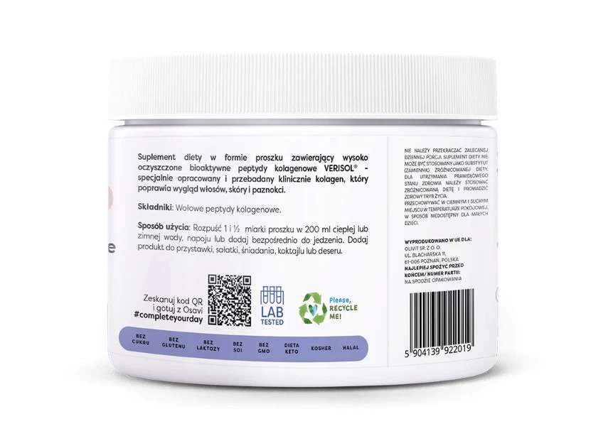 - ✅ Zawiera kod QR z dostępem do przepisów z kolagenem Osavi