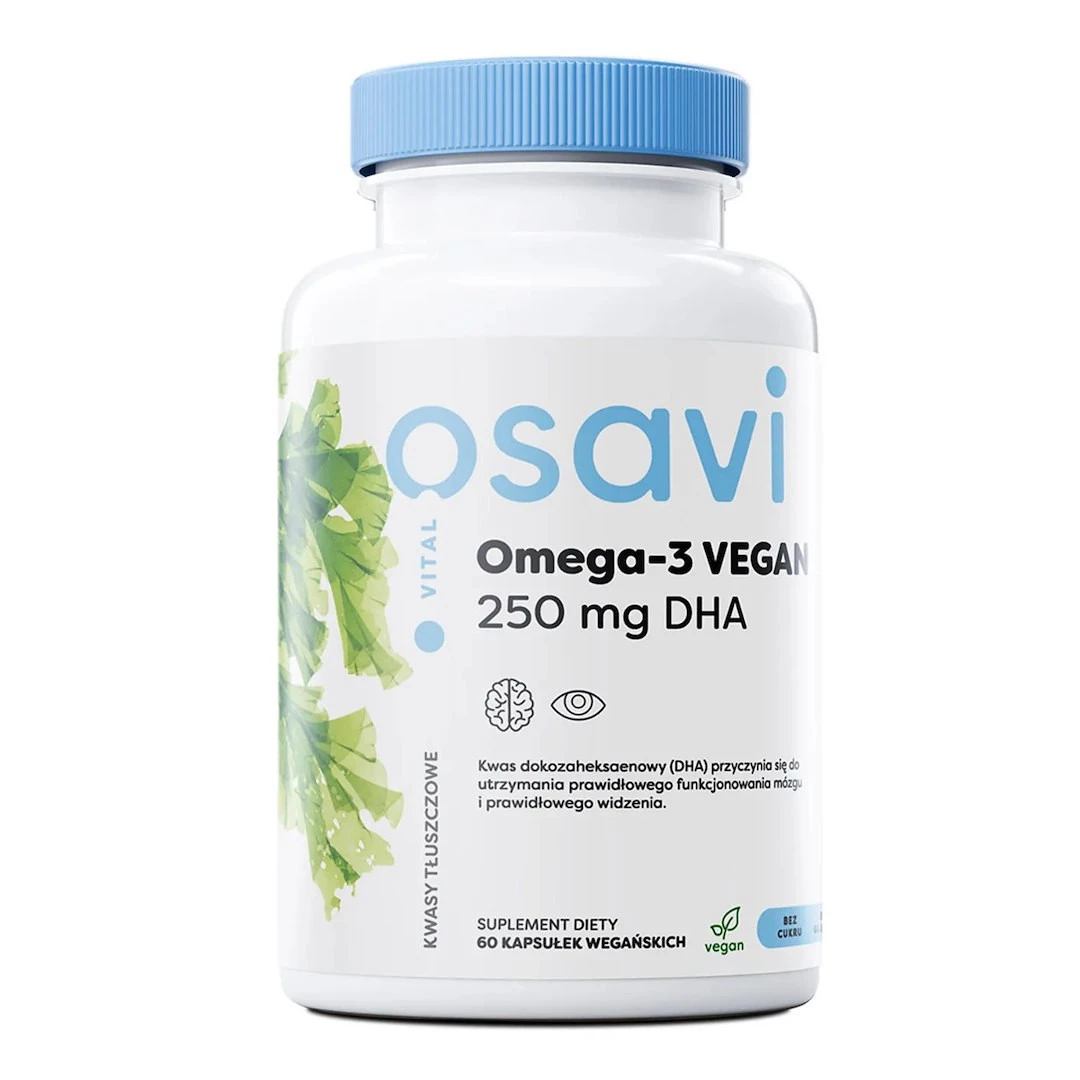 Osavi Omega-3 VEGAN Vital 250 mg DHA 60 kapsułek miękkich wegańskich to starannie opracowany suplement diety, który dostarcza wysokiej jakości kwasy tłuszczowe DHA pochodzenia roślinnego. Produkt został stworzony z myślą o osobach, które preferują wegański styl życia, a jednocześnie poszukują czystego i przejrzystego składu. Każda kapsułka jest wypełniona olejem pochodzącym z mikroalg, co czyni go idealnym wyborem dla tych, którzy unikają produktów pochodzenia zwierzęcego.