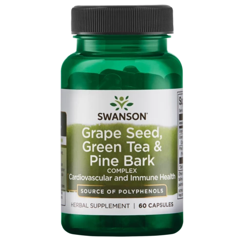 Swanson Grape Seed, Green Tea & Pine Bark to formuła, która łączy potężne polifenole z zielonej herbaty z oligomerycznymi proantocyjanidynami znajdującymi się w korze sosnowej i nasionach winogron, tworząc synergiczną siłę, która zapewnia szerokie spektrum ochrony.