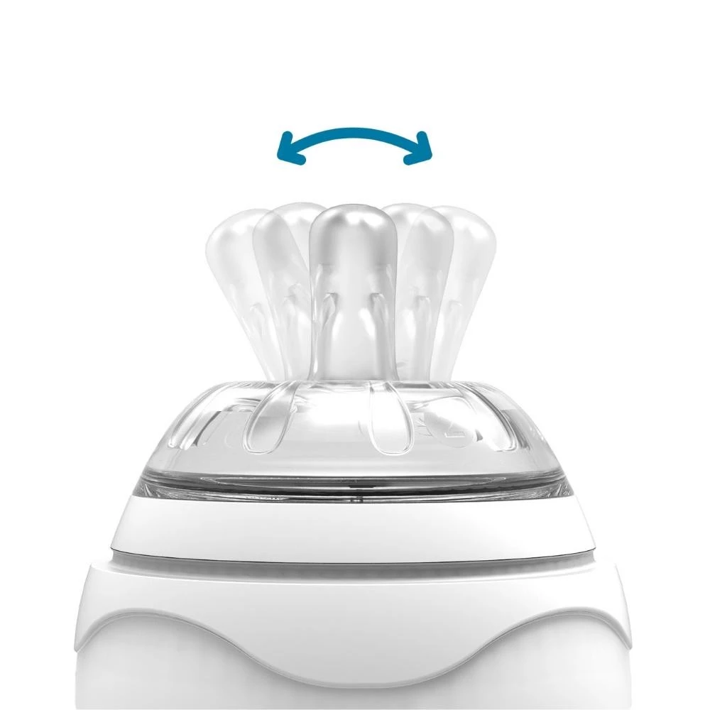 Innowacyjny smoczek został zaprojektowany nie tylko tak, aby wyglądał jak prawdziwy sutek, ale także by zachowywał się jak sutek mamy podczas karmienia piersią.