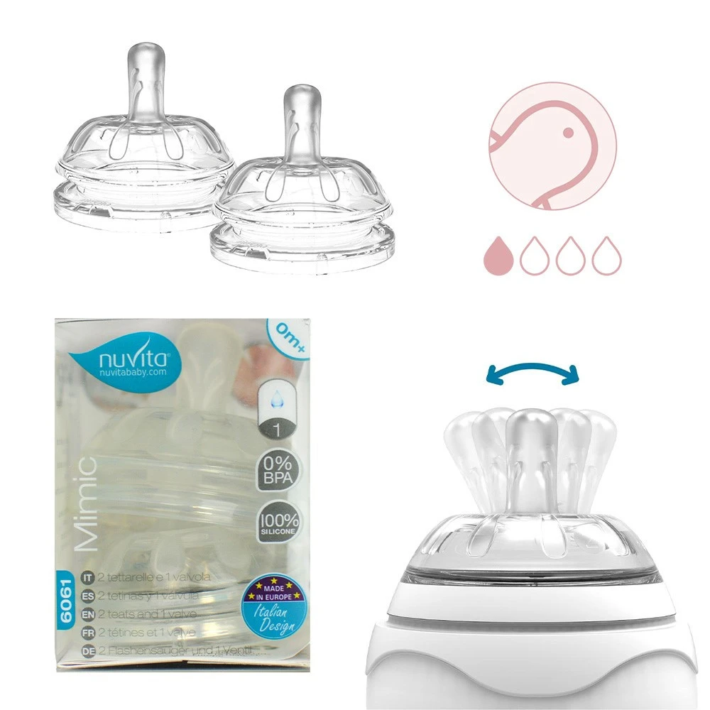 Nuvita, Zestaw smoczków 0 m+ o wolnym przepływie + zaworek, 2 szt.