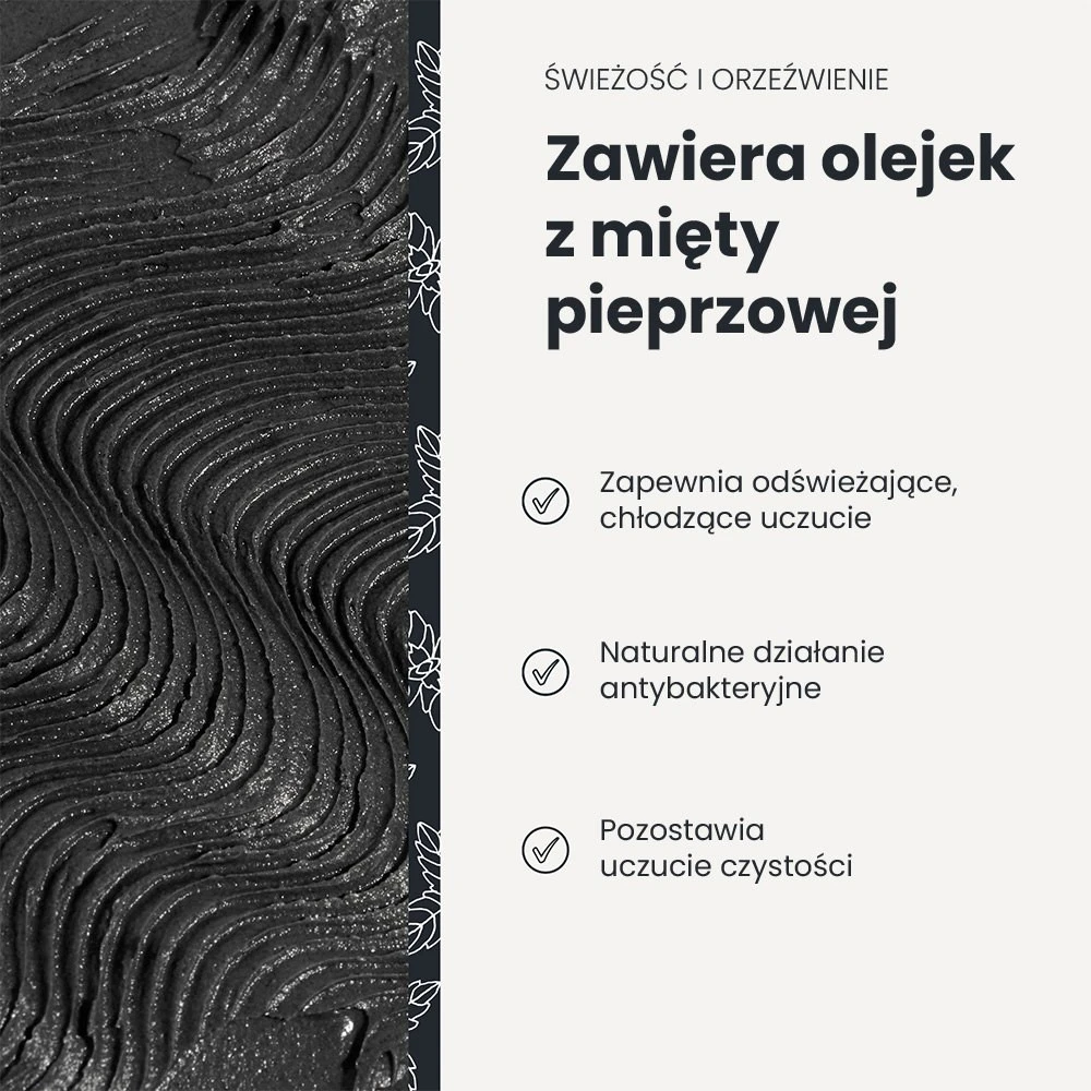 Skład (INCI): Calcium carbonate^, Caprylic/ capric triglyceride^, Helianthus annuus seed oil^, Xylitol^, Kaolin^, Diatomaceous earth^, Sodium bicarbonate^, Theobroma cacao seed butter^, Butyrospermum parkii butter^, Mentha piperita oil^, Charcoal powder^, Triticum vulgare germ oil^, Calcium fluoride^, Tocopherol^, Limonene^, Linalool^, Citronellol^.