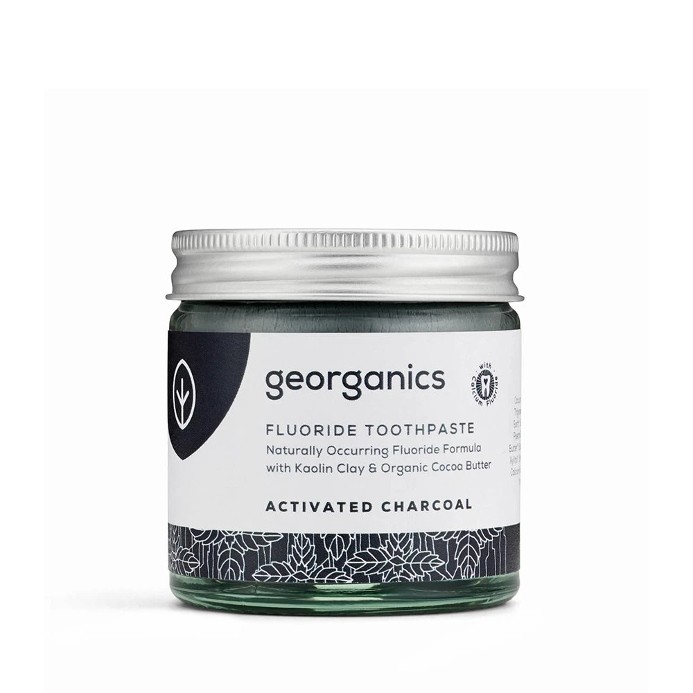 Georganics, Naturalna pasta do zębów w słoiku, do codziennej pielęgnacji, z fluorem i aktywnym węglem, 60 ml