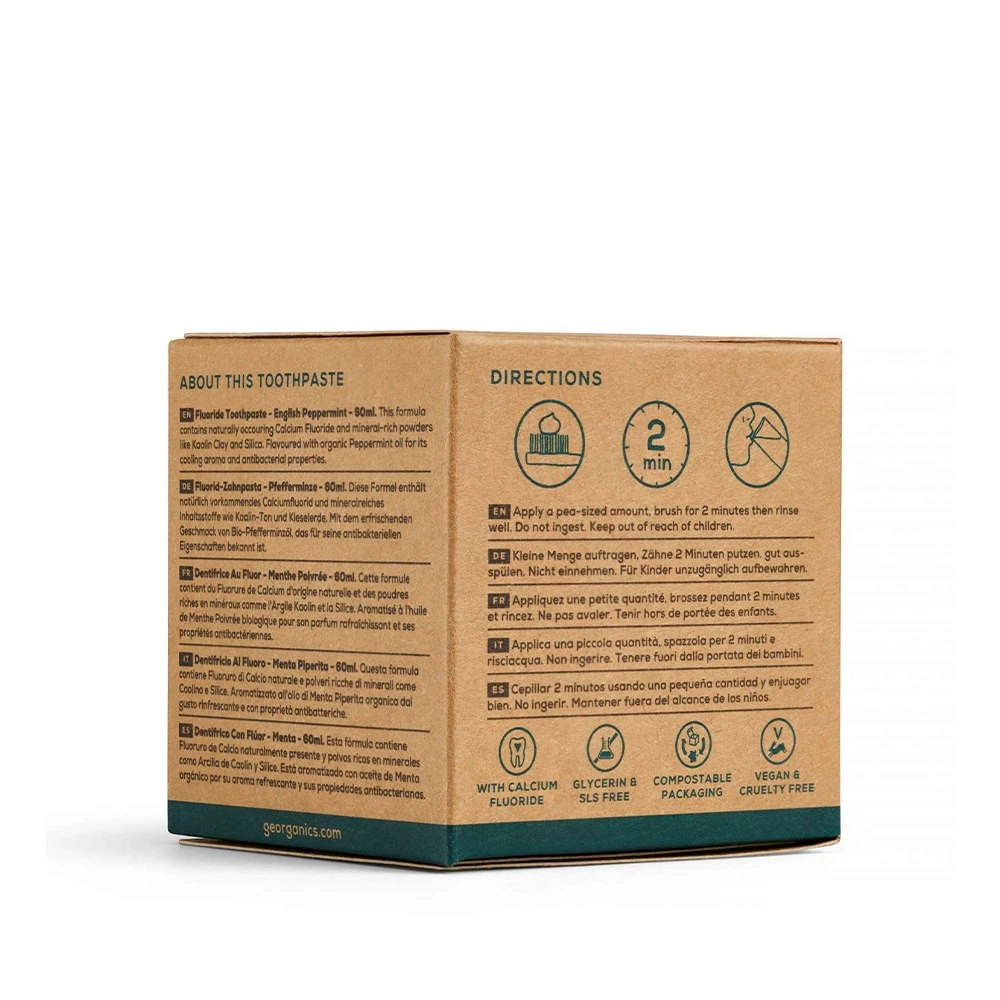 Georganics, Naturalna pasta do zębów w słoiku, z fluorem, do codziennej pielęgnacji, smak mięty pieprzowej, 60 ml