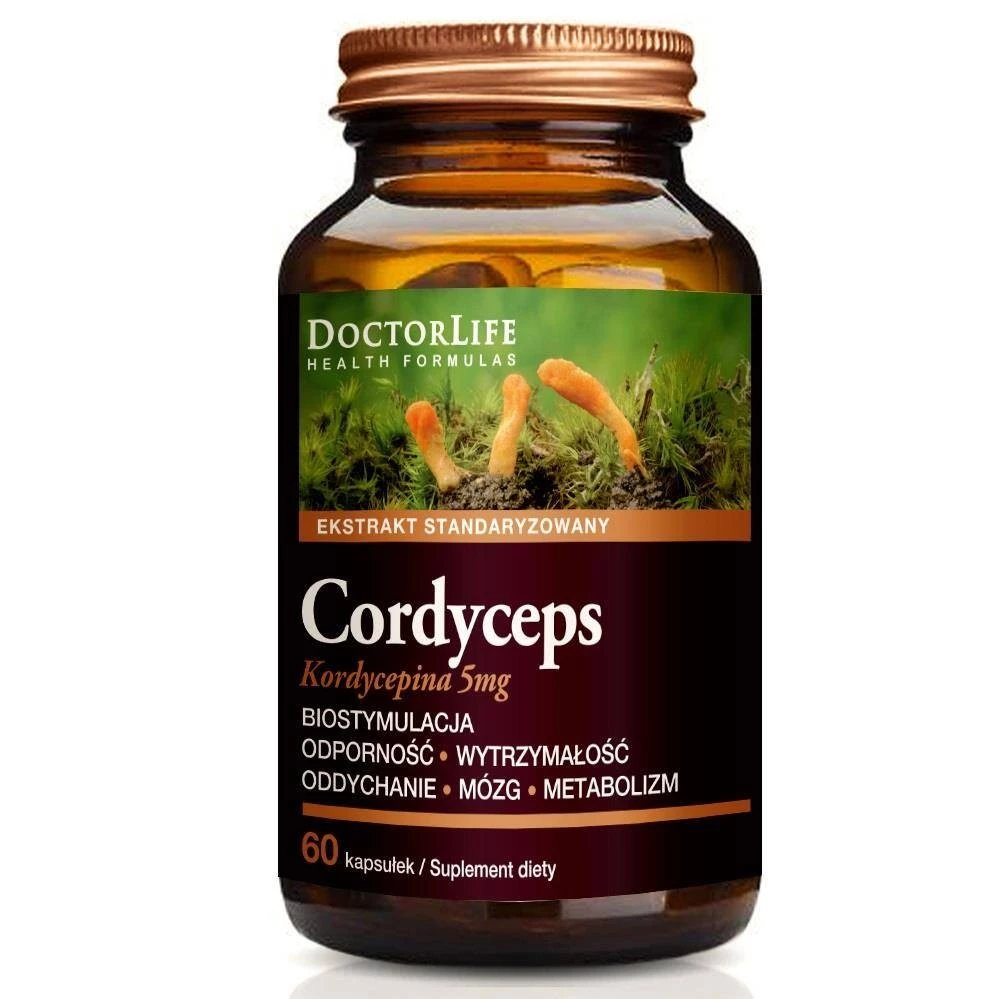 • KORDYCEPS - Stymuluje układ odpornościowy, poprawia funkcjonowanie układu oddechowego, wpływa pozytywnie na wytrzymałość, energię i wydolność fizyczną, wspiera poprawną aktywność seksualną i libido u mężczyzn, wykazuje działanie antyoksydacyjne, przeciwzapalne i przeciwbakteryjne.